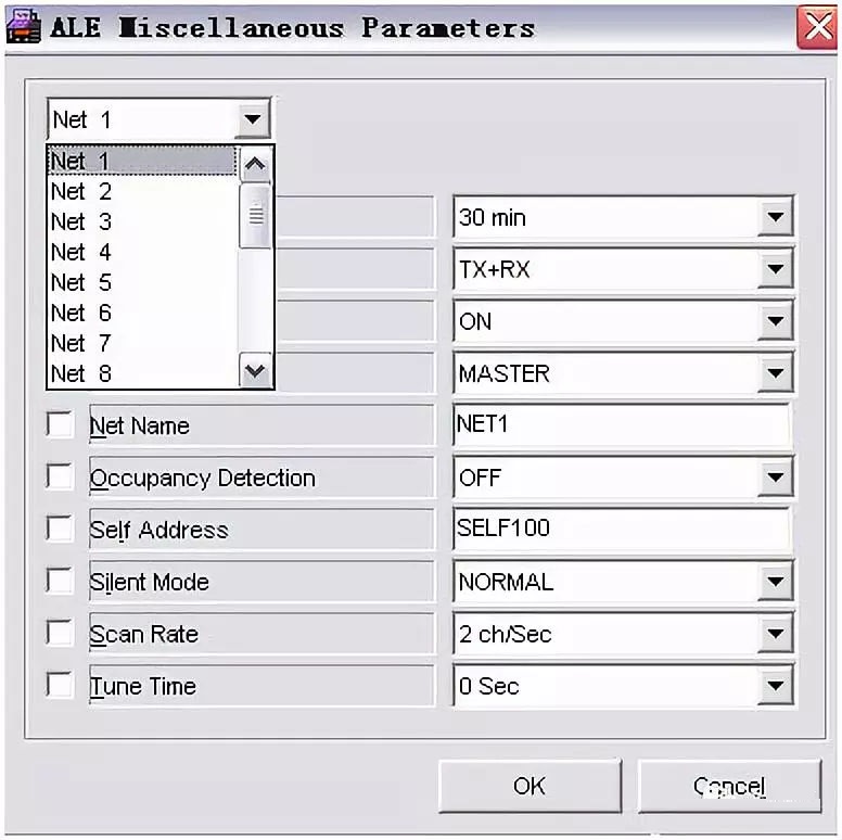 3. 在ALEALE MiscellaneousNet name參數中輸入選定的網絡地址net1,net2 等。在self Address 參數中輸入本機的標識地址。