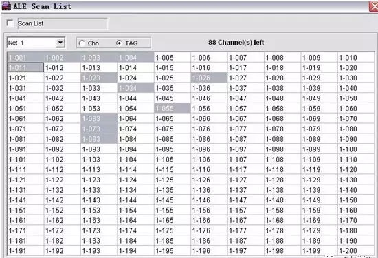 6. 在ALEScan Channel List下選定要掃描的記憶頻道。