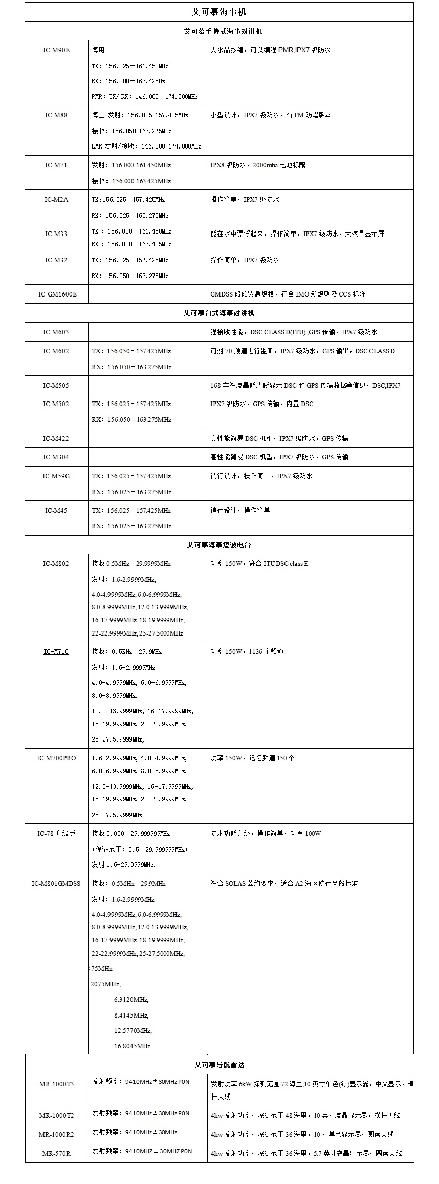 日本艾可慕株式會社是于1954年成立的專門制造無線電通訊設備的廠家,產品涉及陸地對講機,航空對講機,海事船用對講機,無線電愛好者對講機,雷達等以其經營管理模式一直穩步于世界通訊界前列.艾可慕生產的高性能,高品質的通訊設備-對講機在世界對講機領域享有很高的聲譽.在業余無線電的領域中艾可慕品牌一直穩步于世界業余無線電前端.