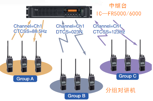 注意:在中繼臺(中轉臺)應用中對講機手臺需要重新編程和中繼臺(中轉臺)頻率配套使用。