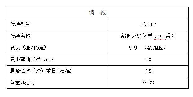 建議采用10D-FB低耗饋纜,當在400NMHz應用,饋線長度大于50m時,建議采用7/8饋管降低損耗,提高中繼臺(中轉臺)系統性能。