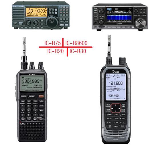 日本艾克慕株式會社生產的ICOM品牌接收機深受用戶喜愛,具有很多既往和現在正在暢銷型號。如手臺形式的IC-R3,IC-R6,IC-R20,IC-R30等;車臺形式的如IC-R2500和臺式的IC-R75,IC-R8500,IC-R8600,IC-R9500等多功能,多頻段,多種顯示形式接收機。涵蓋從低頻到GHz的信號接收和解析顯示。