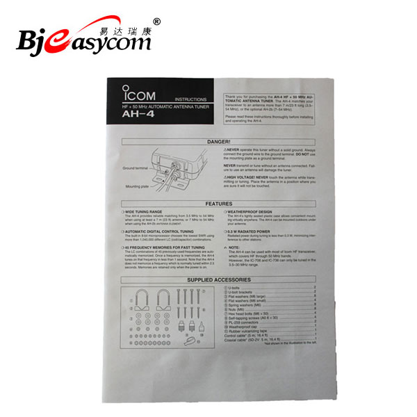 您當前的位置: 首頁 > 產品中心 > ICOM AH-4 天調 短波天調 可配合AH-2B使用