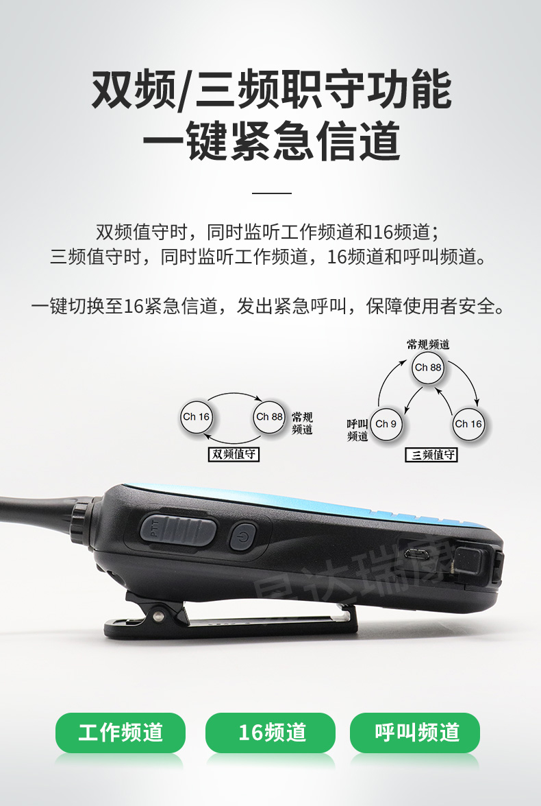 • VHF甚高頻船用航海對講機 內置國際美國加拿大海事頻率 16信道應急鍵