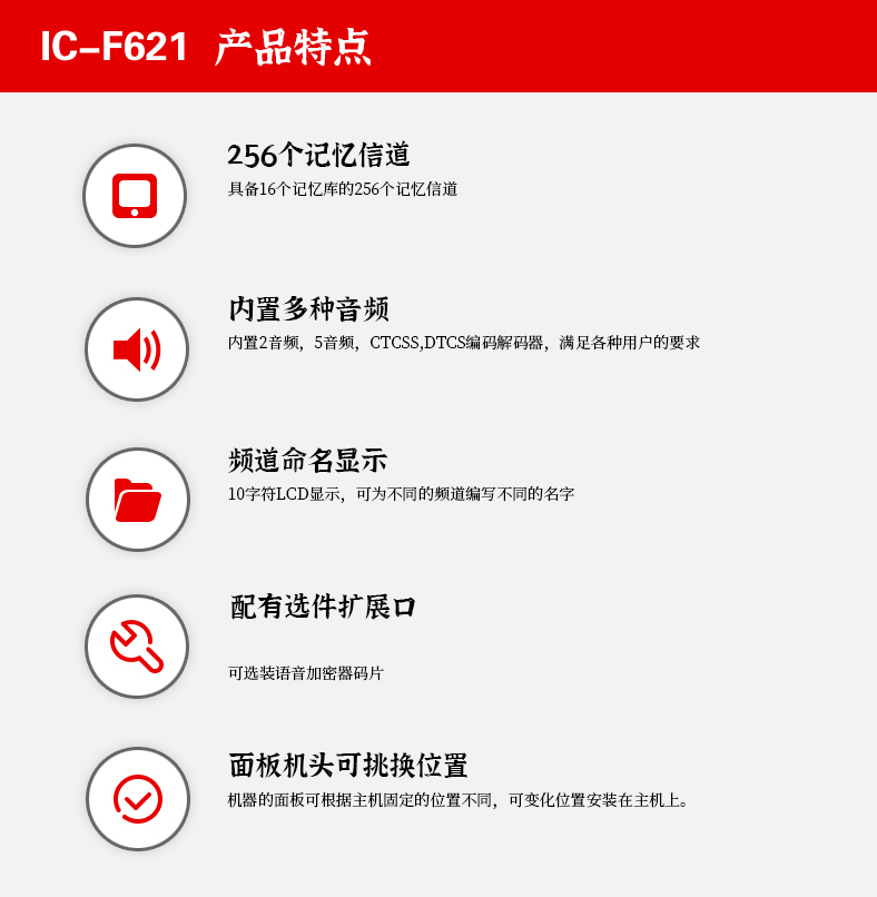 艾可慕ICOM大功率車載臺IC-F621對講機440-470MUHF陸地戶外車載