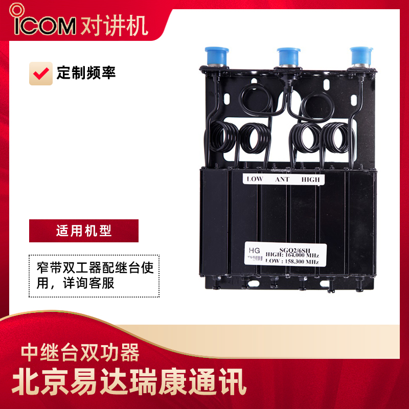 同外觀還有IC-F6028H(RL) 。 中繼鏈路一體機實現中繼功能和聯通兩地和多地同時通訊。中繼和鏈路機跨段互聯,防止同頻段干擾,攜帶方便,架設安裝簡單。一體化220VAC供電,配置外接直流供電接口。