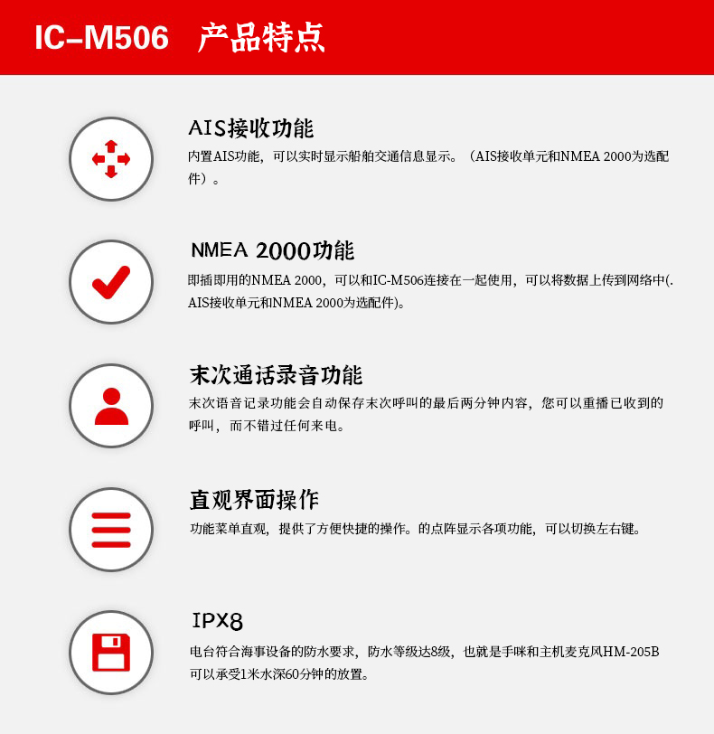 ICOM艾可慕IC-M506海事車載電臺