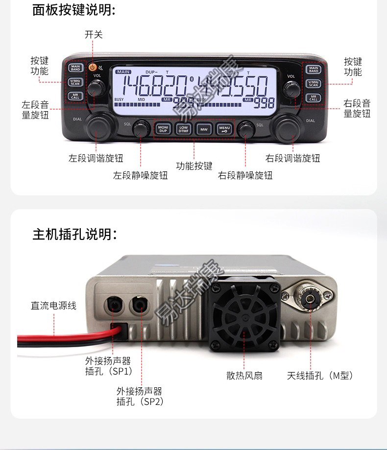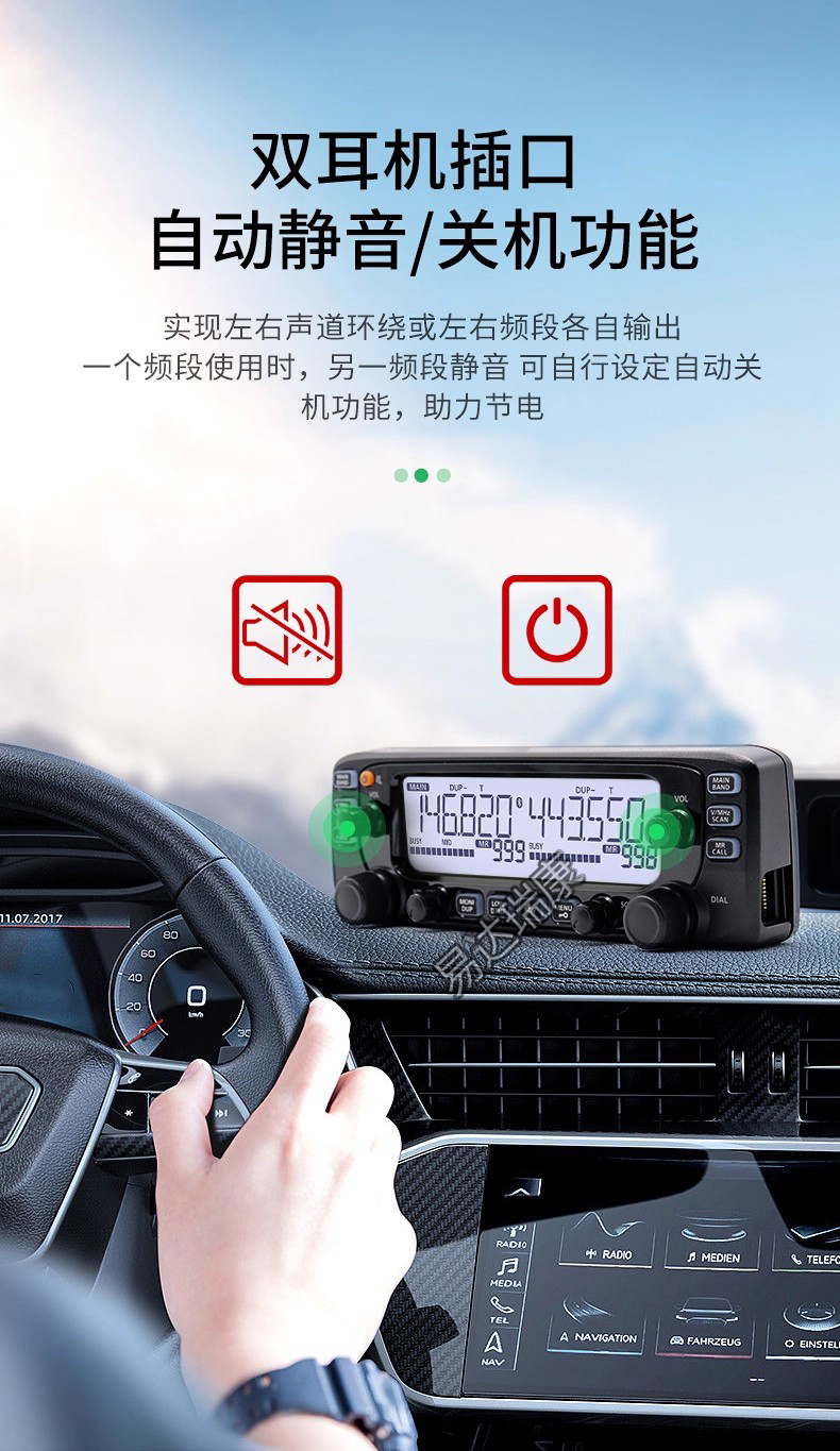 出色性能 聽覺盛宴  VHF/UHF雙段50W大功率輸出