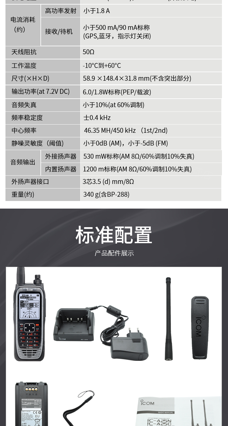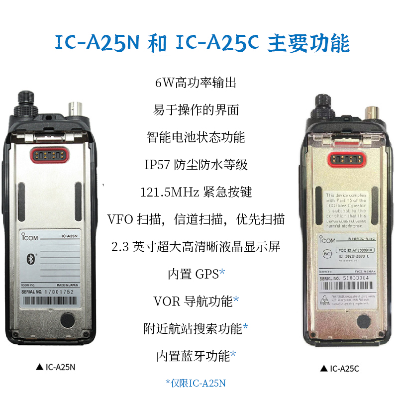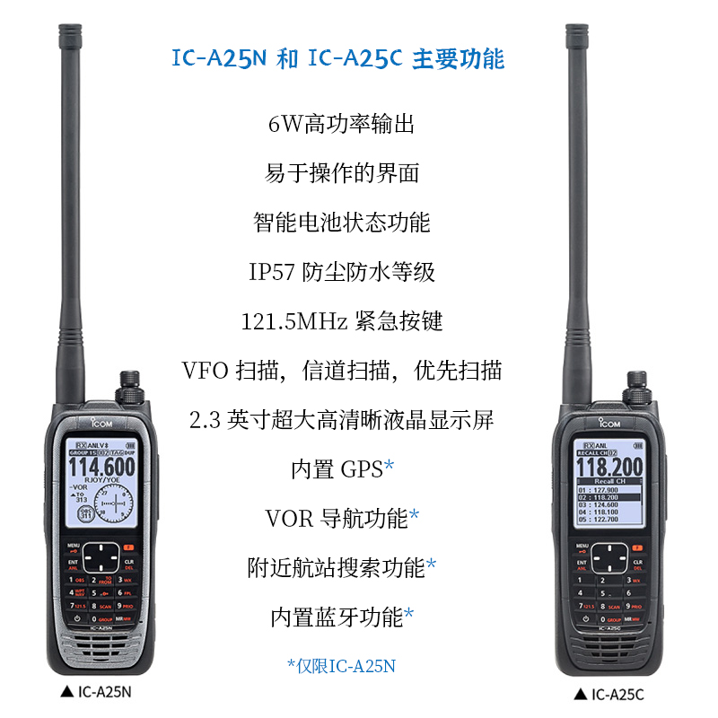 ICOM 艾可慕IC-A25航空對講機內(nèi)置GPS