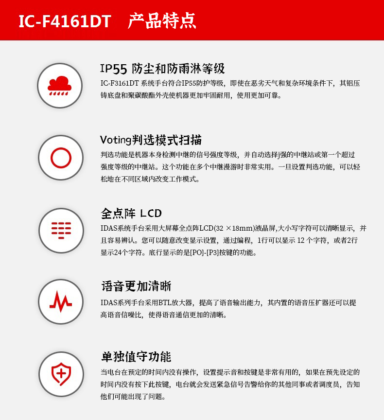 • 數模兼容 FM認證防爆 IP55 大屏幕 支持集群功能