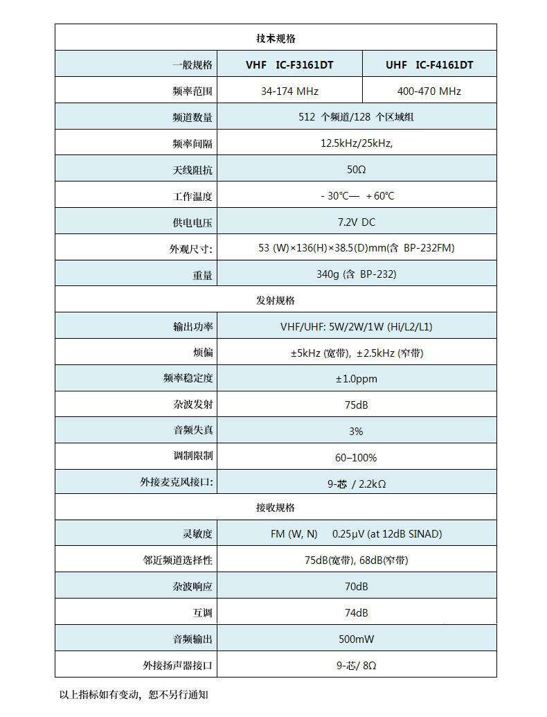 說明:以上條款均以摩托羅拉公司,威泰克斯,艾可慕,健伍公司的有關規定為準。