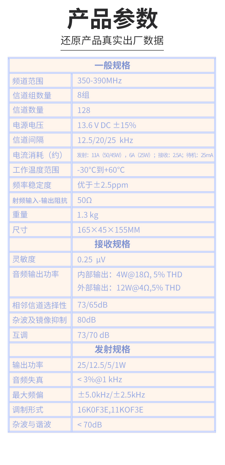• 128個信道 25W輸出350-390MHz 選呼功能