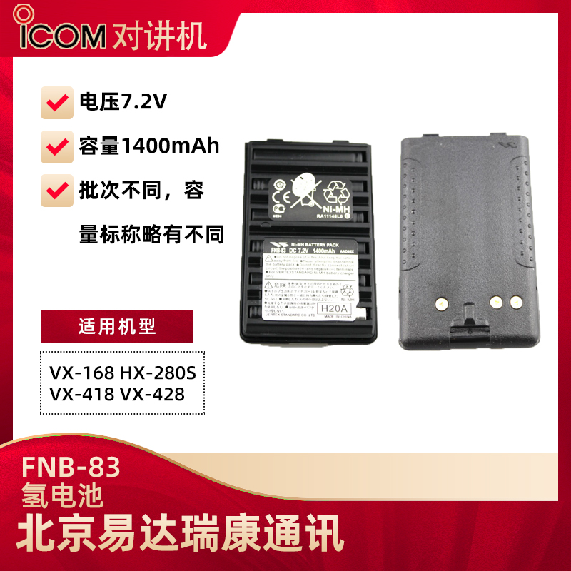 適用機型:威泰克斯VX-829普通對講機[注:VX-829防爆款不能配用此電池,防爆款適用電池型號:FNB-V92Li]