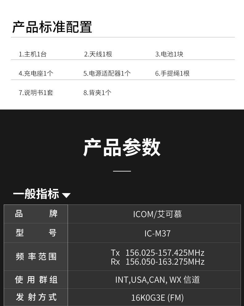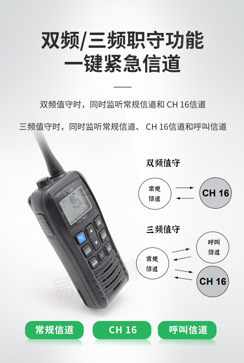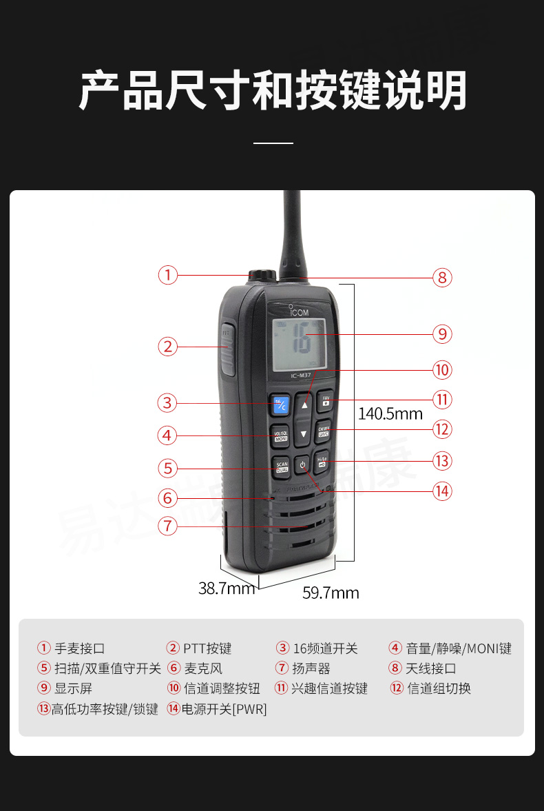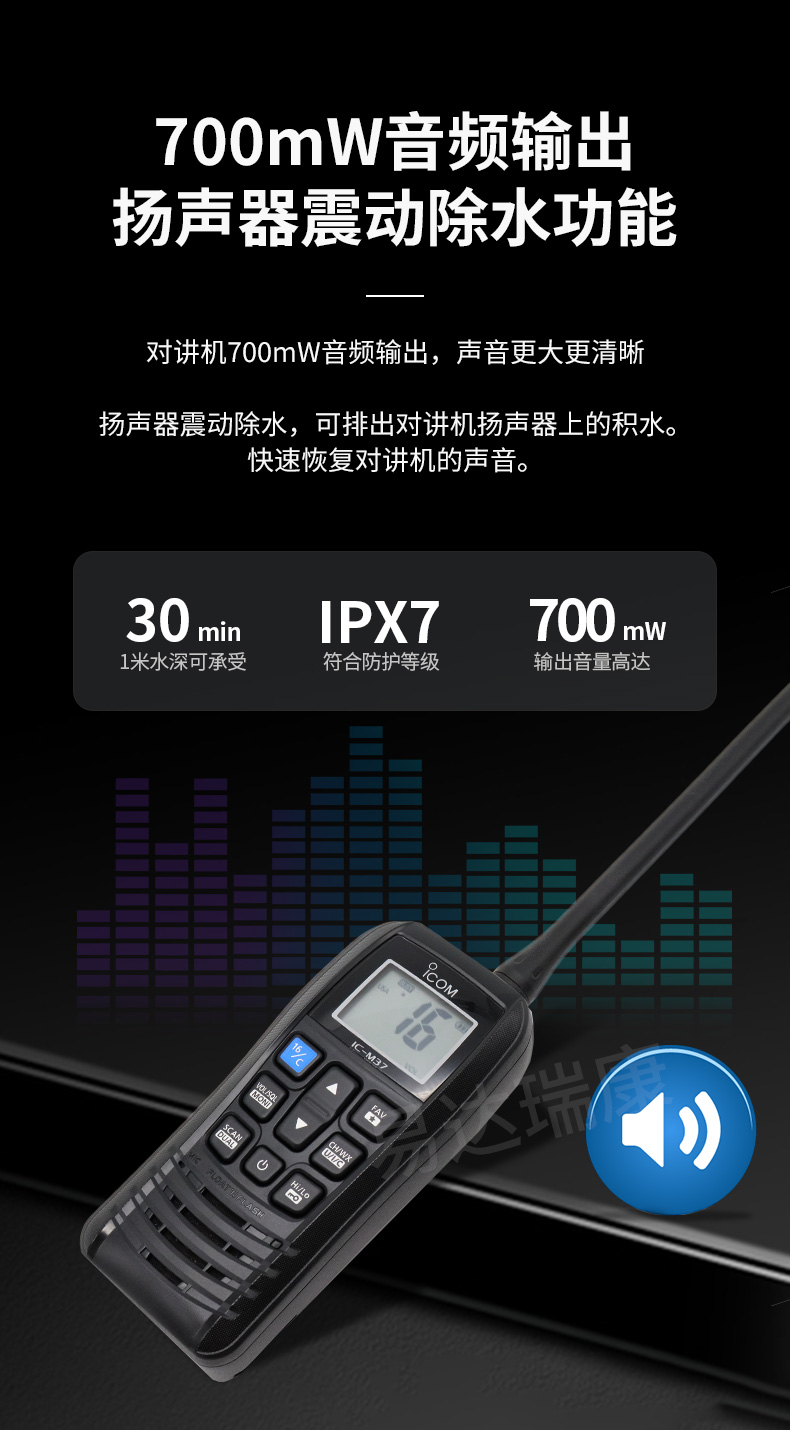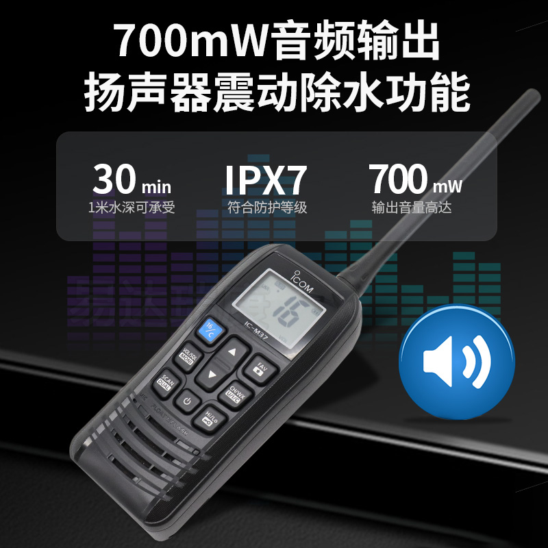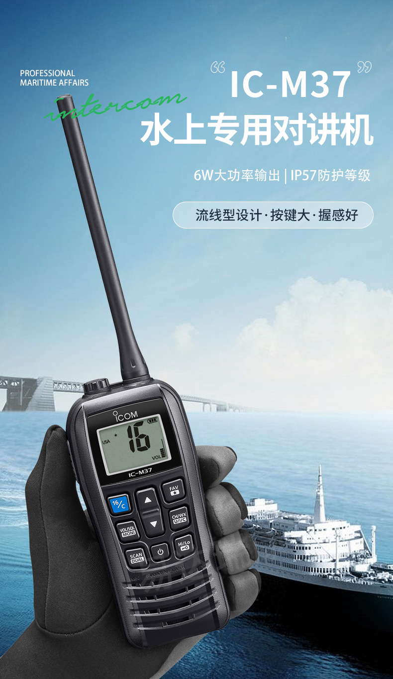 IC-M37艾可慕ICOM海事對(duì)講機(jī)手持電臺(tái)大功率輸出水上專(zhuān)票