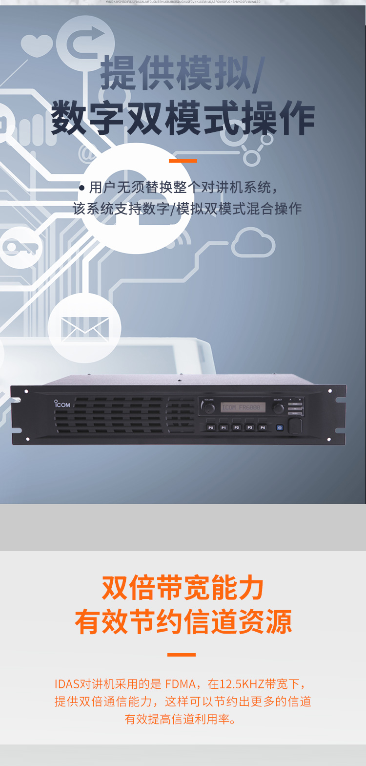 ICOM艾可慕數模兼容智能中繼集群系統中轉電臺IC-FR5300數字/模擬中繼臺