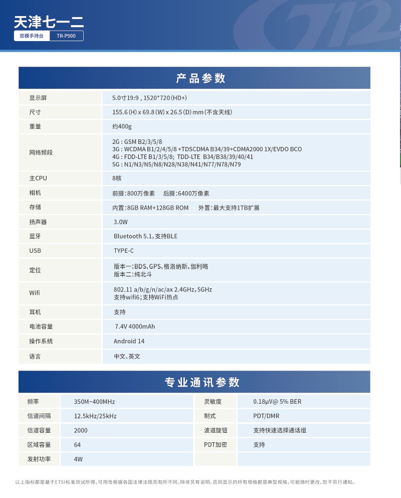 天津七一二雙模手持臺TR-P900