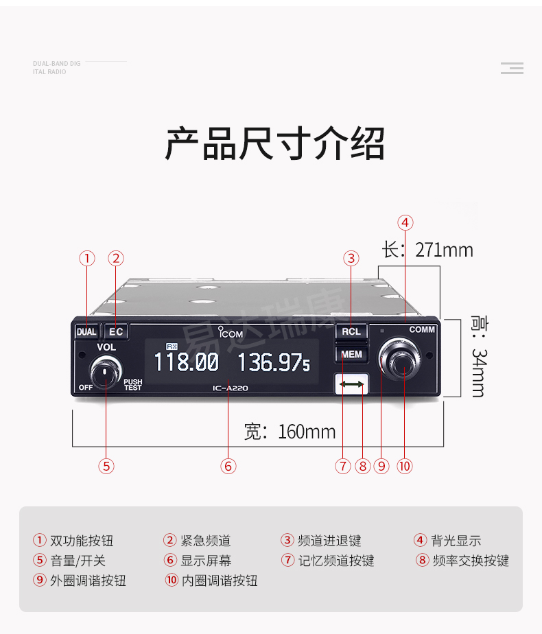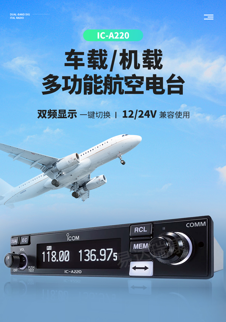 您當(dāng)前的位置: 首頁(yè) > 產(chǎn)品中心 > ICOM艾可慕IC-A220航空車載電臺(tái)