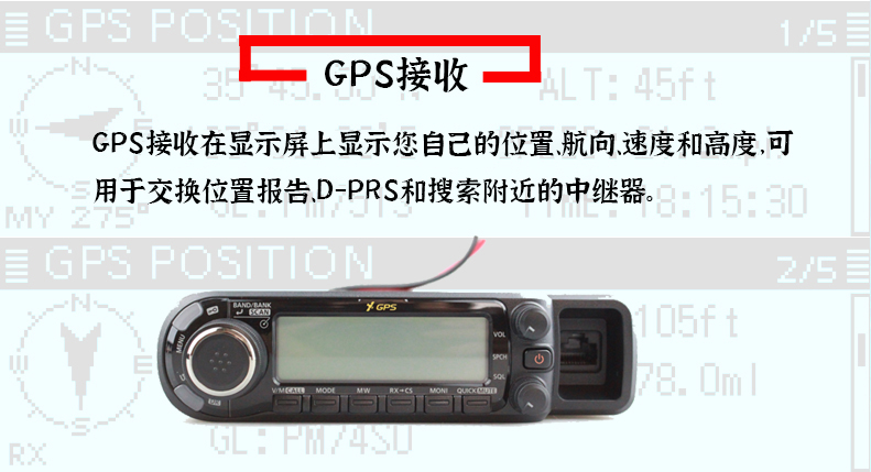 • 144MHz/430MHz雙段 可接收航空段頻率 內置GPS