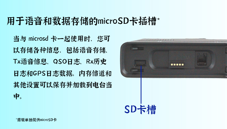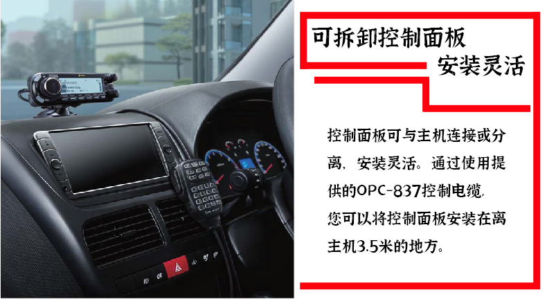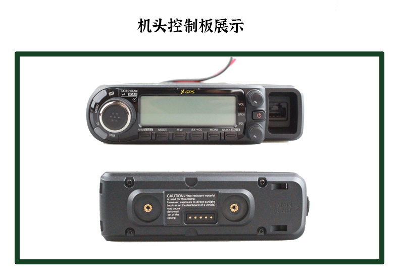 寬帶接收,U/V雙段發射,數模業余電臺,LCD 4色背光顯示和按鍵背光,內置GPS接收,控制面板與主機可分離,可插SD卡用于語音和數據的存儲,輸出功率50W。