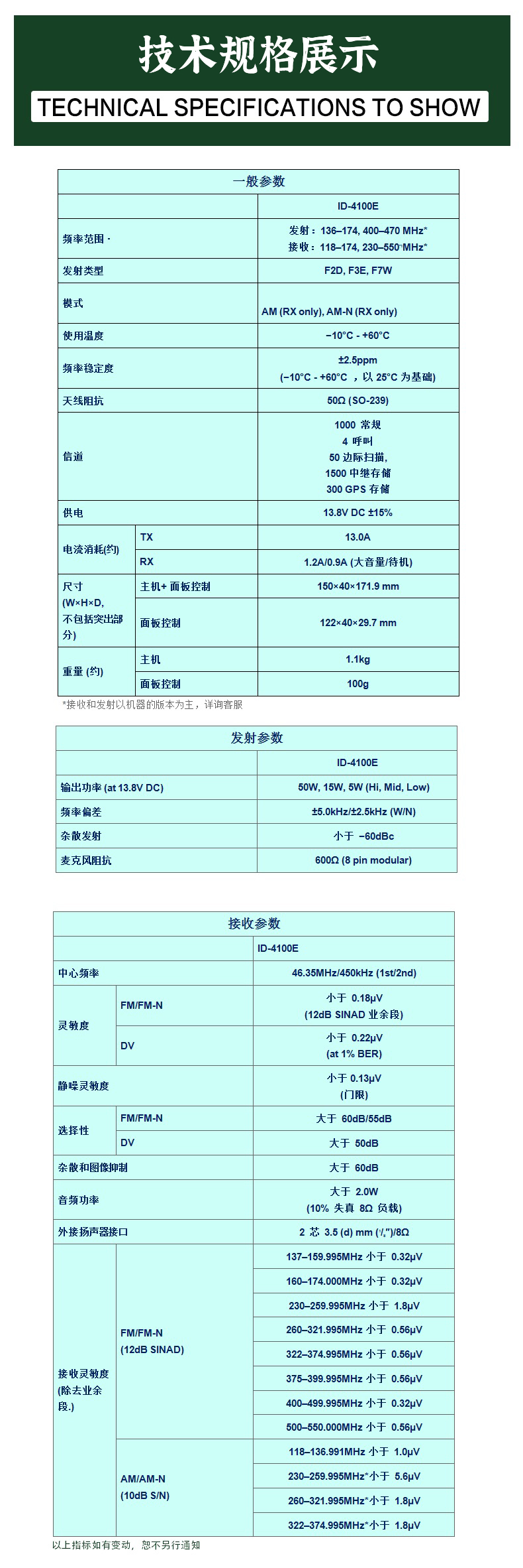 說明:以上條款均以摩托羅拉公司,威泰克斯,艾可慕,健伍公司的有關規定為準。